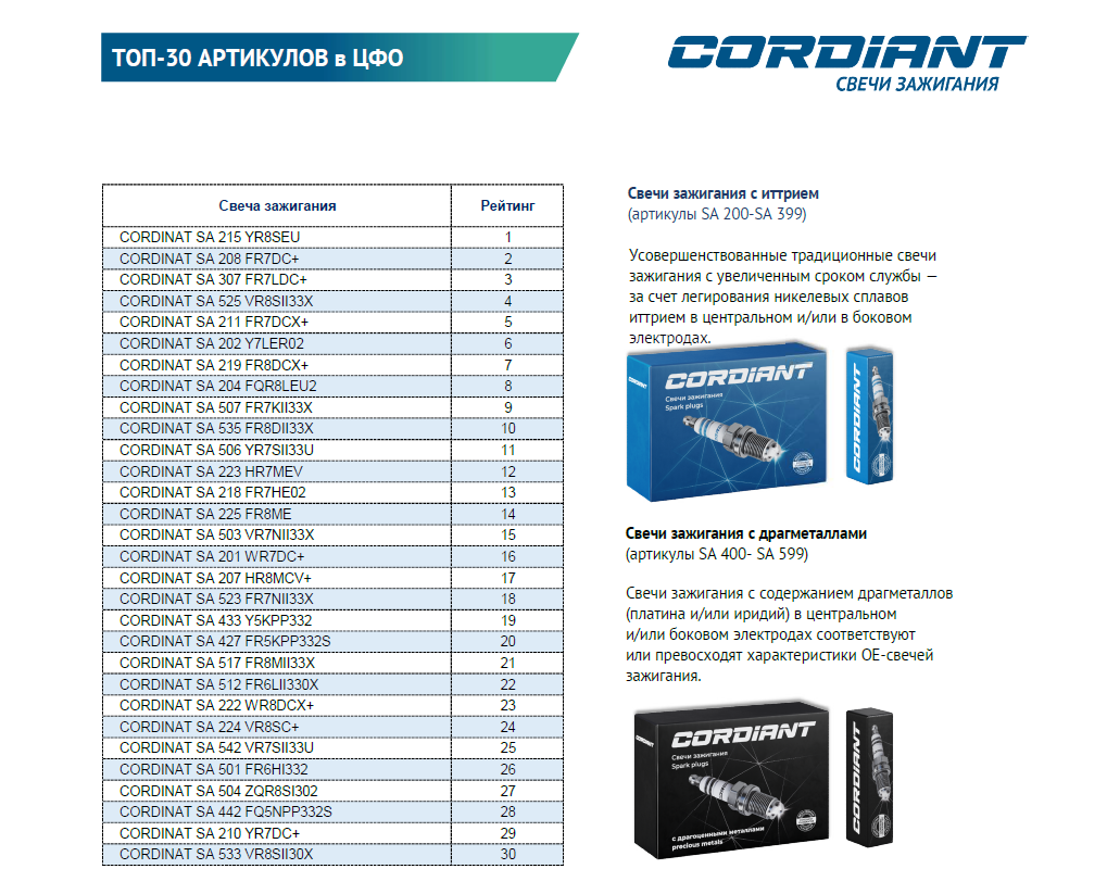 Новые артикулы в ассортименте свечей зажигания Cordiant.